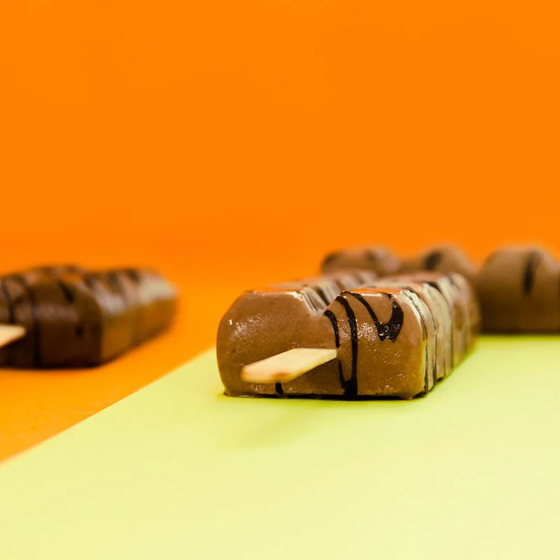 Chocolate gelato with chocolate drizzle. A simple yet sophisticated pleasure for chocolate lovers.